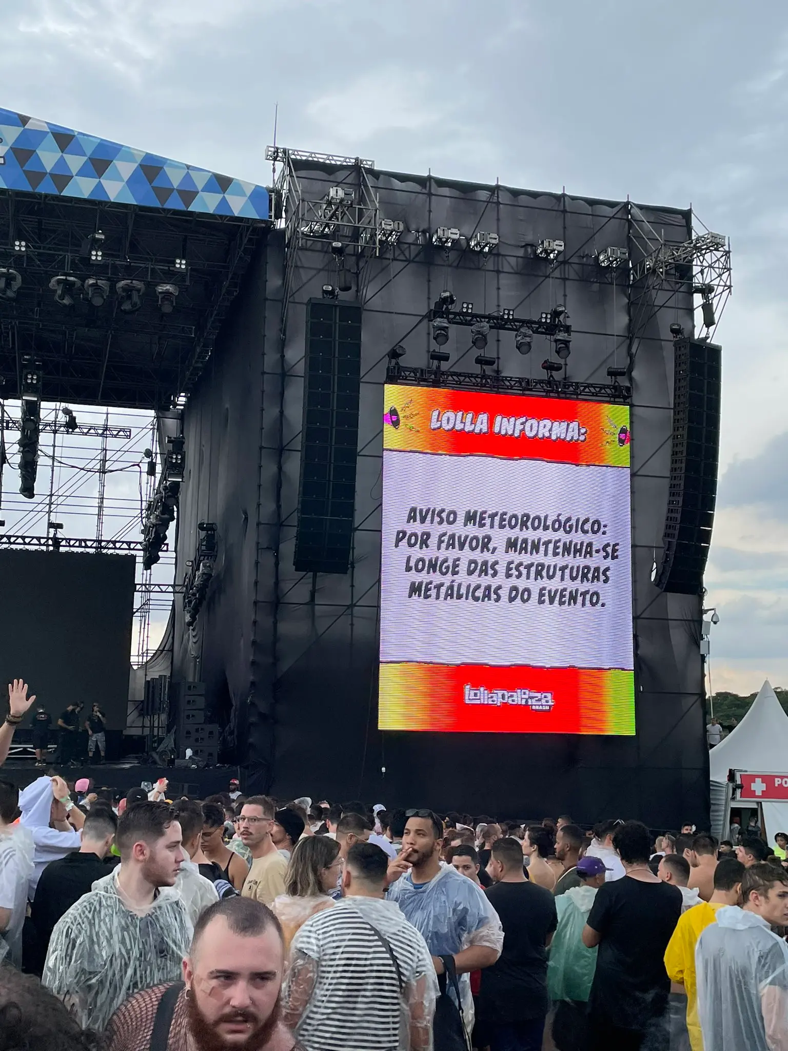 Organização do evento orienta participantes a se manterem afastados de estruturas metálicas, por risco de raios