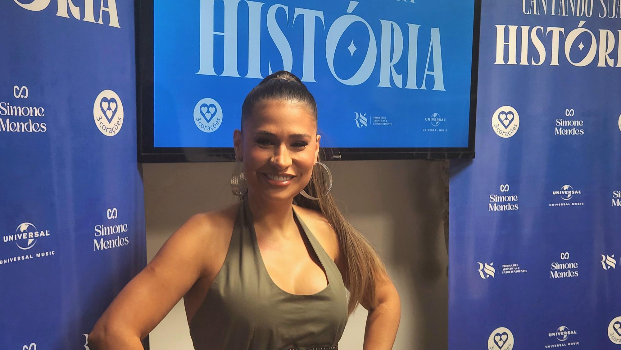A cantora Simone Mendes está apostando alto na gravação do projeto audiovisual "Cantando sua História". Em coletiva de imprensa, realizada nesta sexta-feira (15), a sertaneja revelou o sonho de querer ganhar um Grammy com o novo produto. Com estrutura de DVD, a baiana escolheu Fortaleza (CE) — cidade que até hoje ela mantém casas — para gravar o trabalho neste sábado (16). O álbum será todo voltado ao gênero sertanejo.