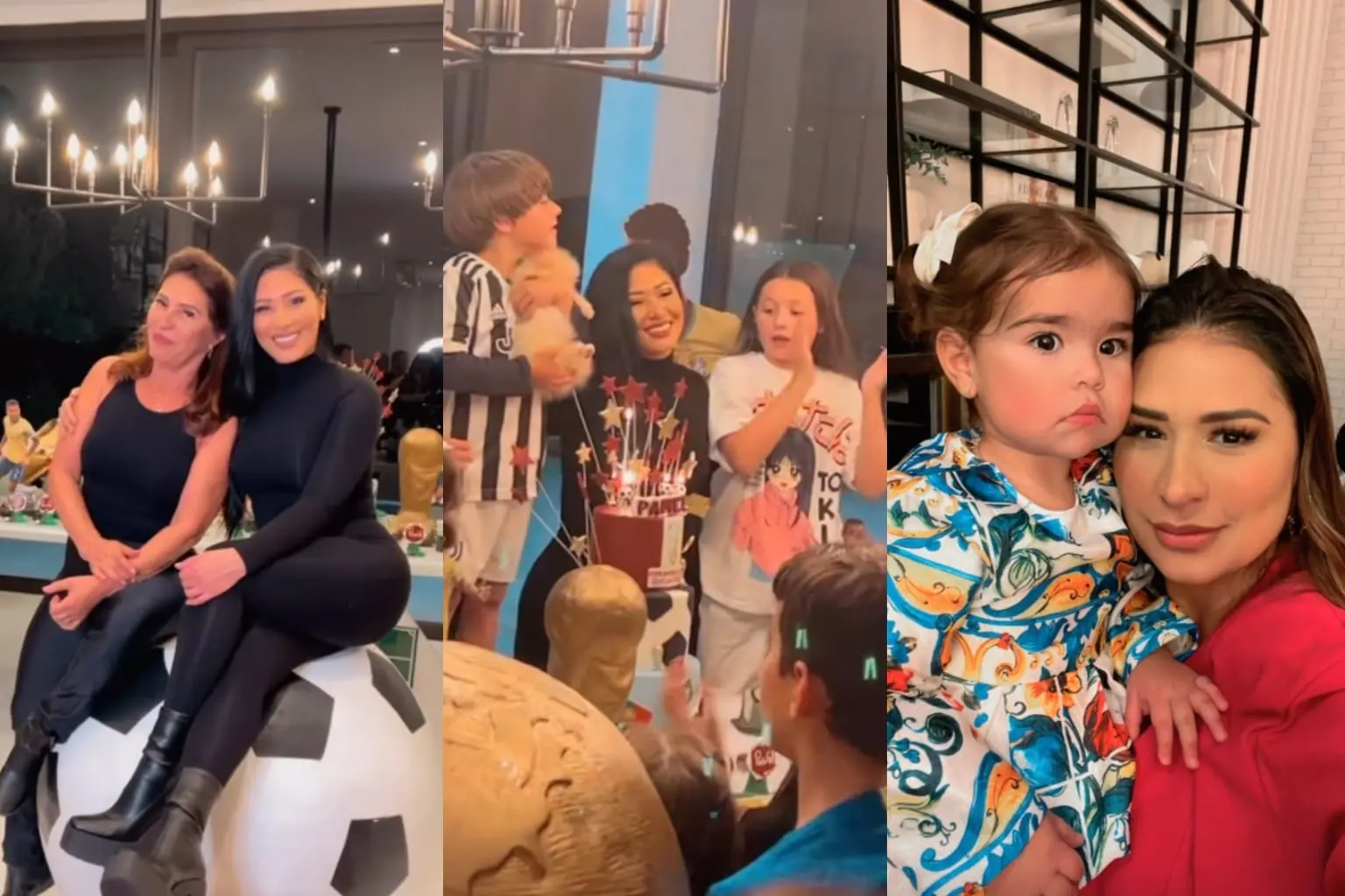 “Estou aqui no aniversário do Pawel. Hoje ele faz 7 aninhos. Eu vim numa correria, estava fazendo uma publicidade. Sai correndo e cheguei aqui na casa da Simaria para comemorar o aniversário do Pawel”, detalhou Simone.