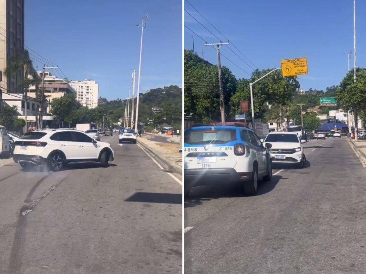 Em vídeo, é possível ver o momento em que o cantor faz drifts — técnica de direção em deslizar nas curvas escapando a traseira — ao passar próximo de uma viatura do 31º Batalhão da Polícia Militar (BPM).