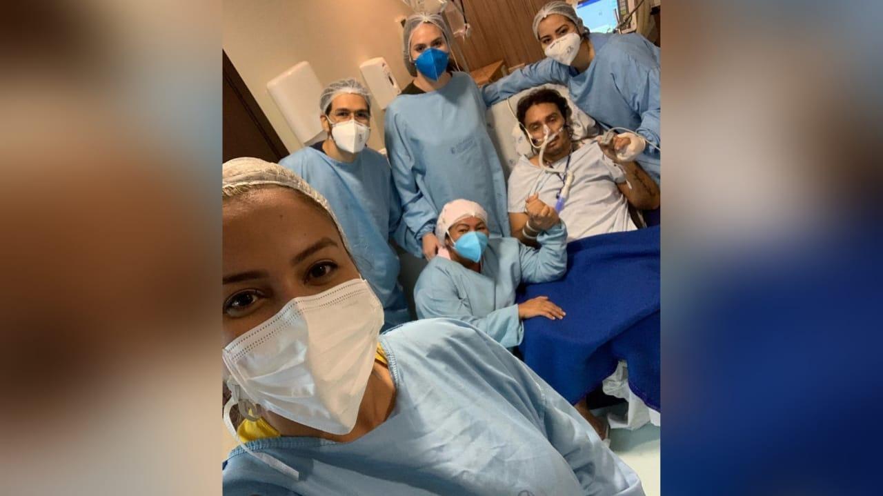 Também no mesmo dia, a esposa do artista, Carol Rabelo, publicou um texto sobre milagres e uma foto equipe médica que cuida do marido.