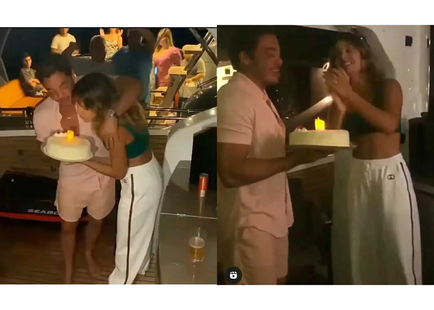 O cearense Wesley Safadão comemorou o aniversário da companheira Thyane Dantas, 30, e da mãe, a empresária Maria Valmira Silva de Oliveira — a Dona Bill — nesta quinta-feira (18), em Angra dos Reis (RJ). Em uma lancha, apenas com familiares, ele festejou a data com um bolo surpresa.