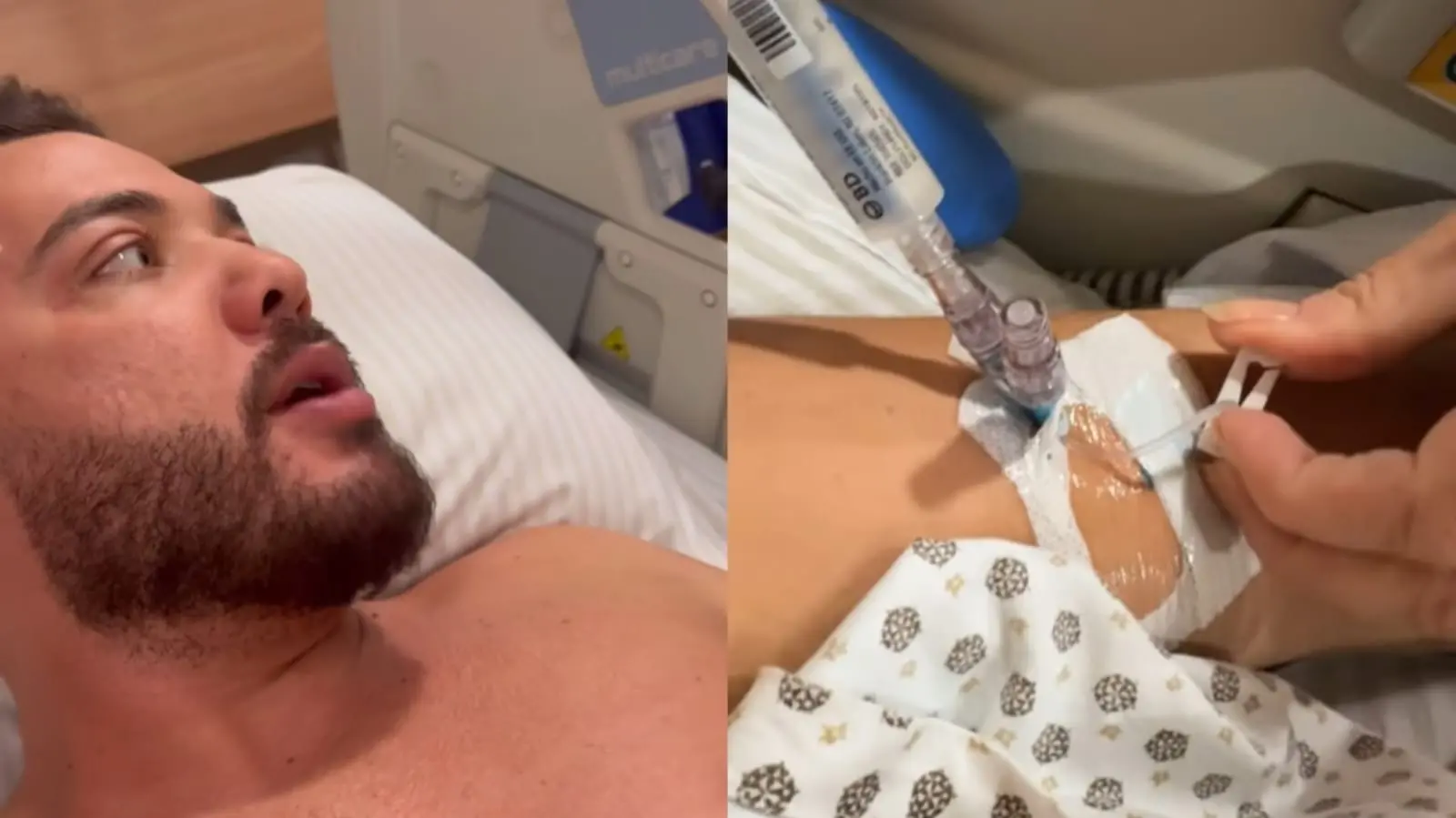 Na noite de segunda-feira, o cantor publicou stories sendo alimentando por Thyane Dantas em quarto do Hospital Sírio-Libanês.