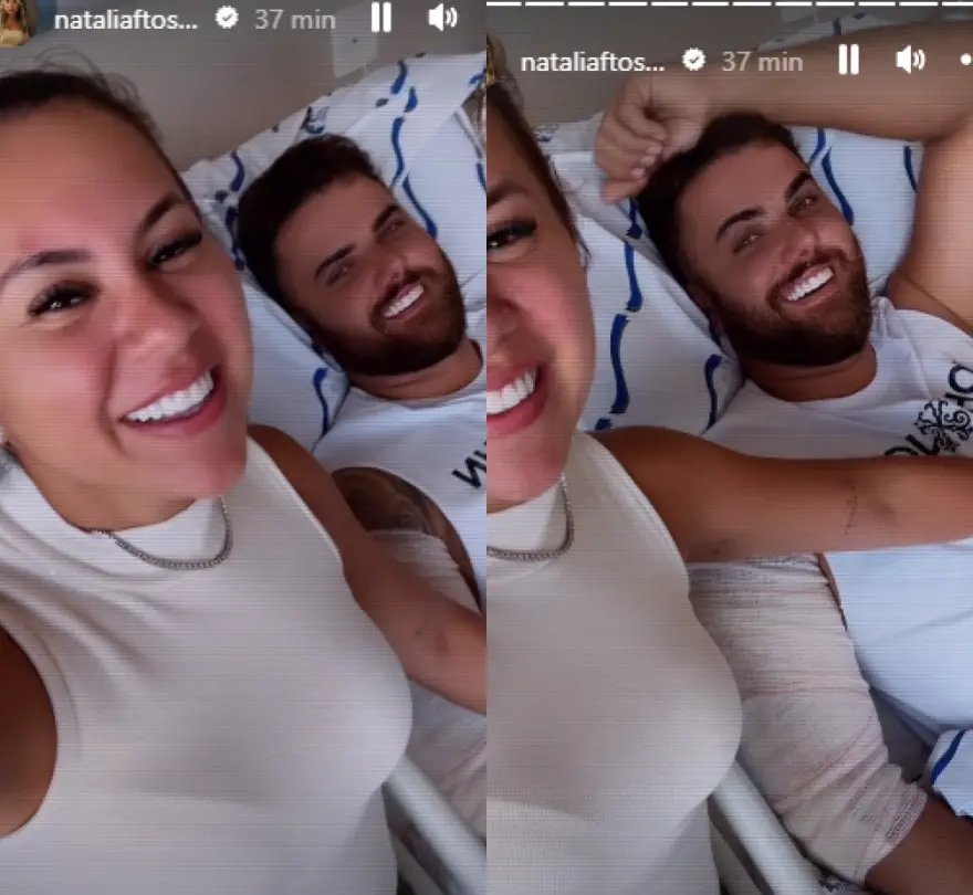 Em vídeo publicado no Instagram da esposa, Natália Toscano, o artista aparece deitado na cama do quarto de enfermaria do Hospital de Base de São José do Rio Preto (SP). A influenciadora digital contou que o marido está bem.