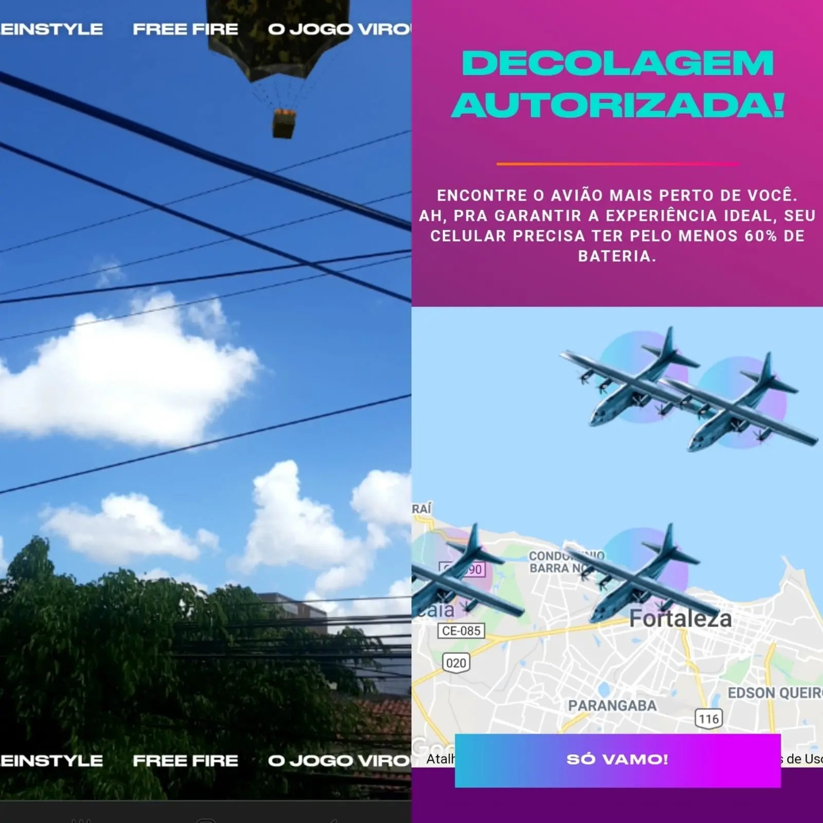 Free Fire realiza experiência virtual no céu do Ceará com prêmios do jogo