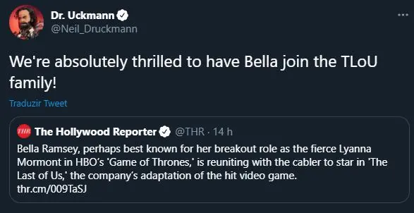 "Estamos absolutamente emocionados de ter Bella na família de TLoF", escreveu o diretor do jogo Neil Druckmann, que também será roteirista e produtor executivo da série.