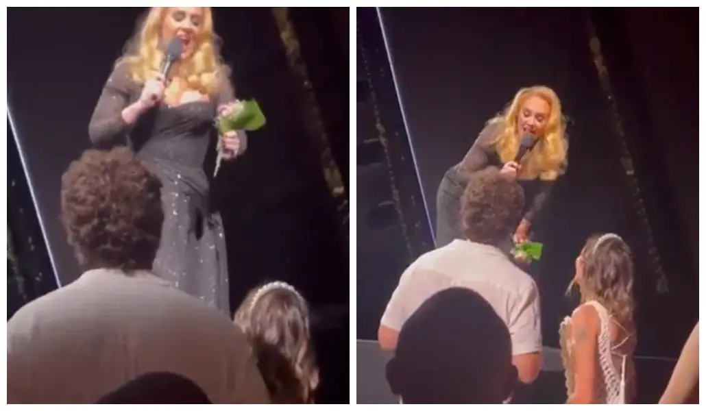 A cantora Adele parou um show em Las Vegas, nos Estados Unidos, para conversar com um casal de brasileiros vestidos de branco na plateia. Ao descobrir que eles haviam acabado de se casar, a britânica acabou abençoando a união.
