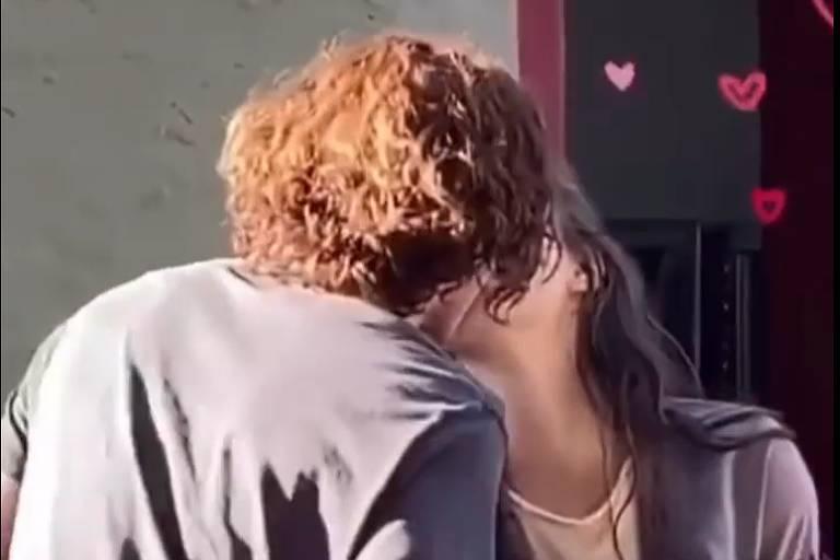 O beijo entre os atores aconteceu na última sexta (20), durante comemoração do aniversário de 24 anos de Alanis nos bastidores das gravações da novela.