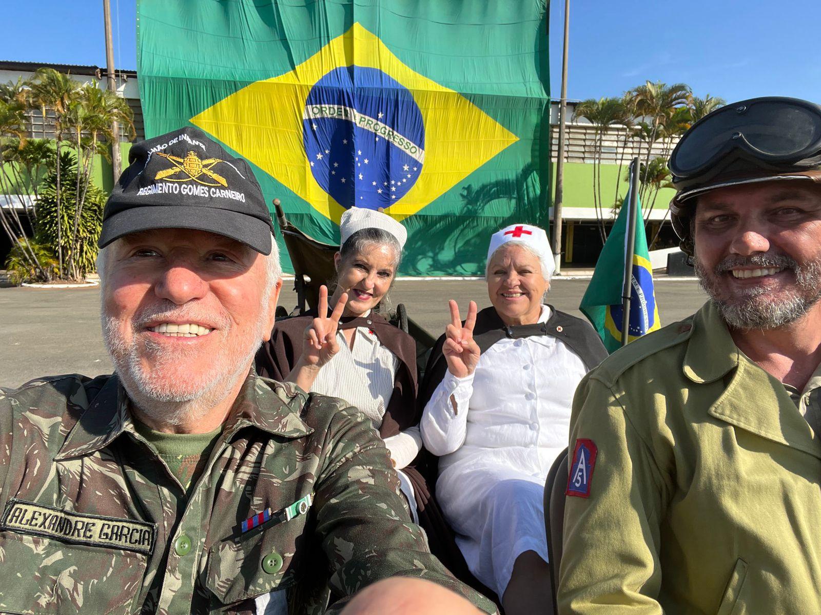 No twitter, Alexandre Garcia postou outras imagens fardados e confirmou a participação no ato.