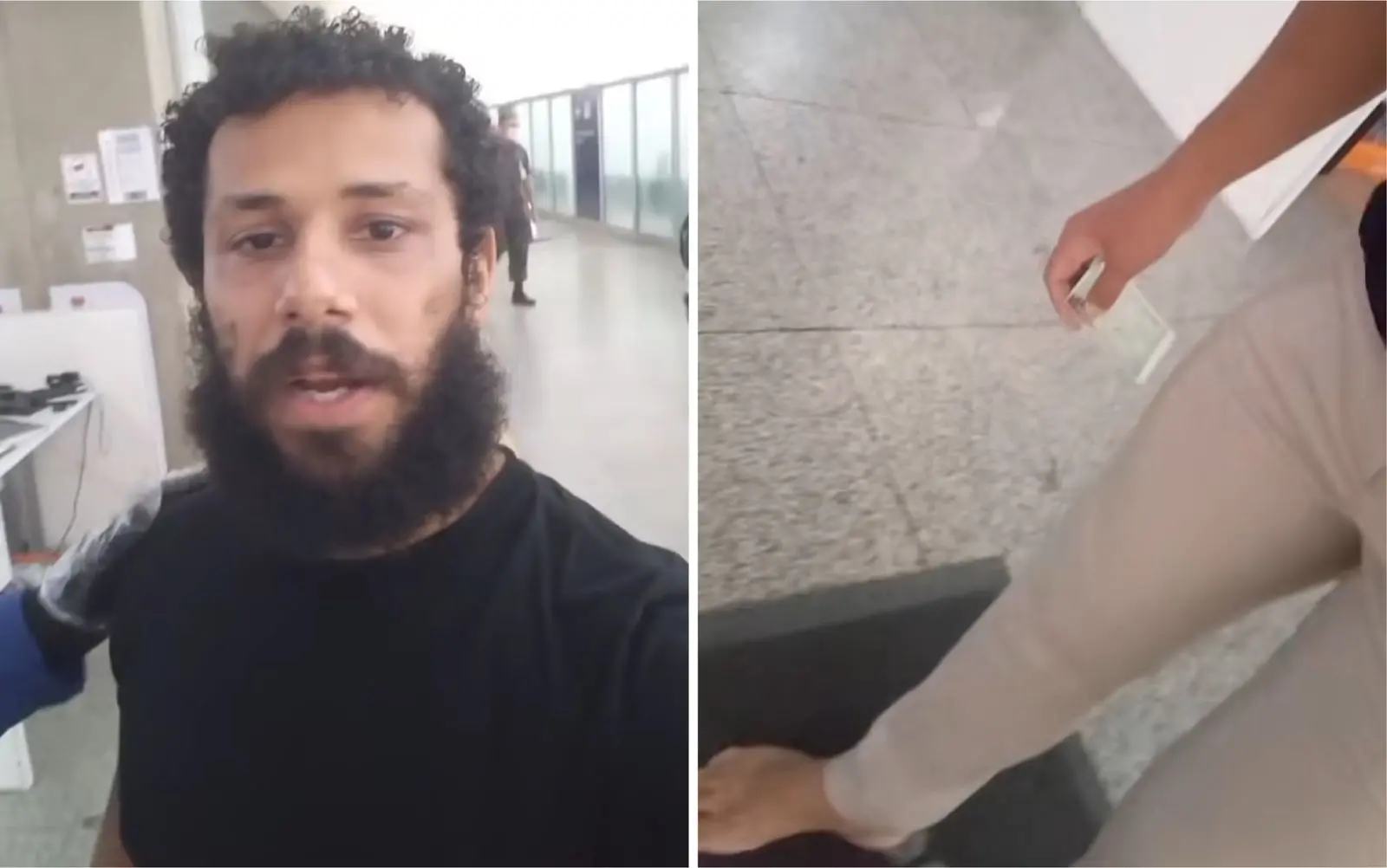 "[Estou] No aeroporto do Galeão, no Rio de Janeiro, e tive que ficar descalço, sem conseguir embarcar. Estou preso aqui, sem conseguir embarcar, com a desconfiança de que estou levando alguma coisa. Triste, né? Pois é. Deve ser o meu cabelo, a minha pele", desabafou o ator nos 'Stories' do Instagram.
