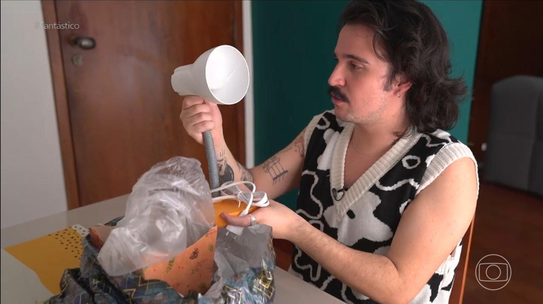 Amigo Secreto do Fantástico: Esse Menino ganha luminária de Michel Gomes e vira meme