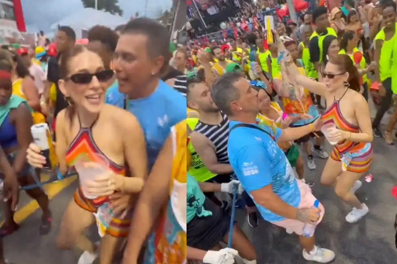 Os apresentadores André Marques e Ana Clara Lima foram vistos em meio à folia do Carnaval de Salvador, na Bahia, na tarde do último sábado (14). Eles estavam dançando juntos durante o bloco da cantora Ivete Sangalo.