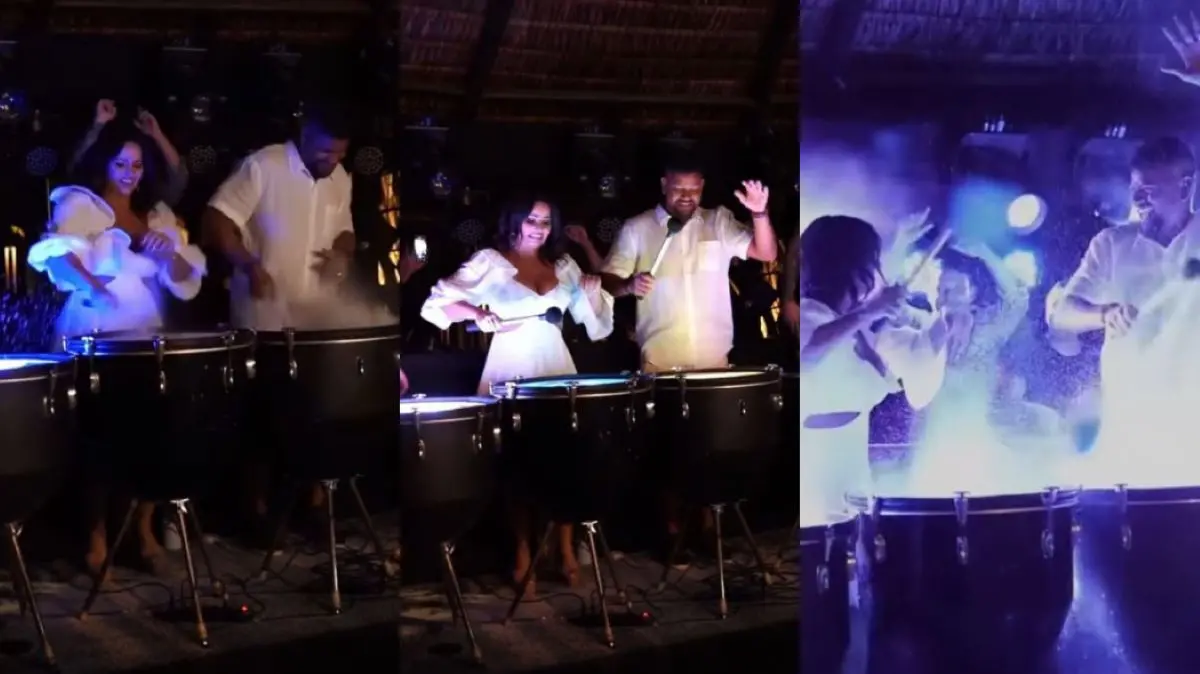 Viviane e o marido tocaram os instrumentos ao som de "Explode Coração". A atriz e dançarina de 47 anos compartilhou vídeo da hora no Instagram.