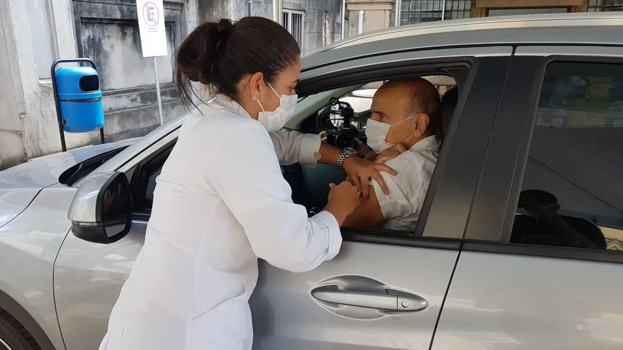 A vacinação ocorreu no modelo drive-thru da Prefeitura de São Paulo na capital paulista.
