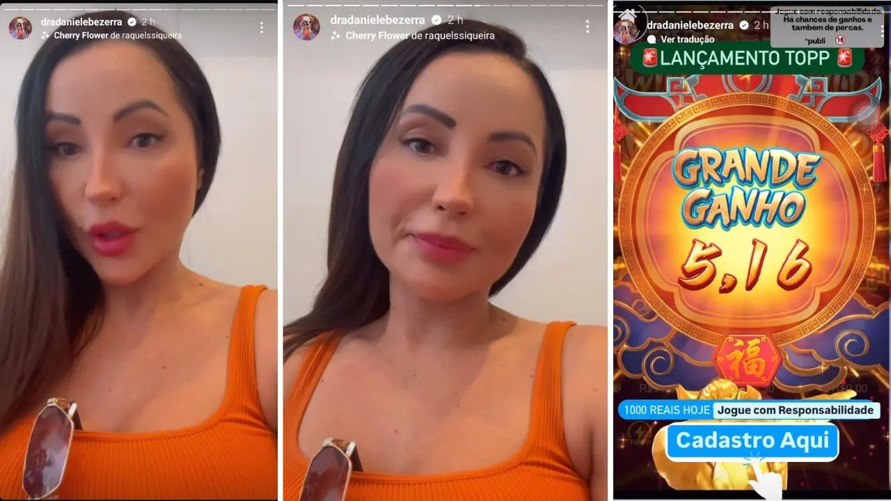 Daniele Bezerra, irmã da influenciadora digital Deolane Bezerra, retornou a divulgar jogos de apostas nas redes sociais após a prisão da mãe e da irmã, neste sábado (7). Daniele tem quase três milhões de seguidores no Instagram, onde incentiva a adesão às plataformas de aposta.