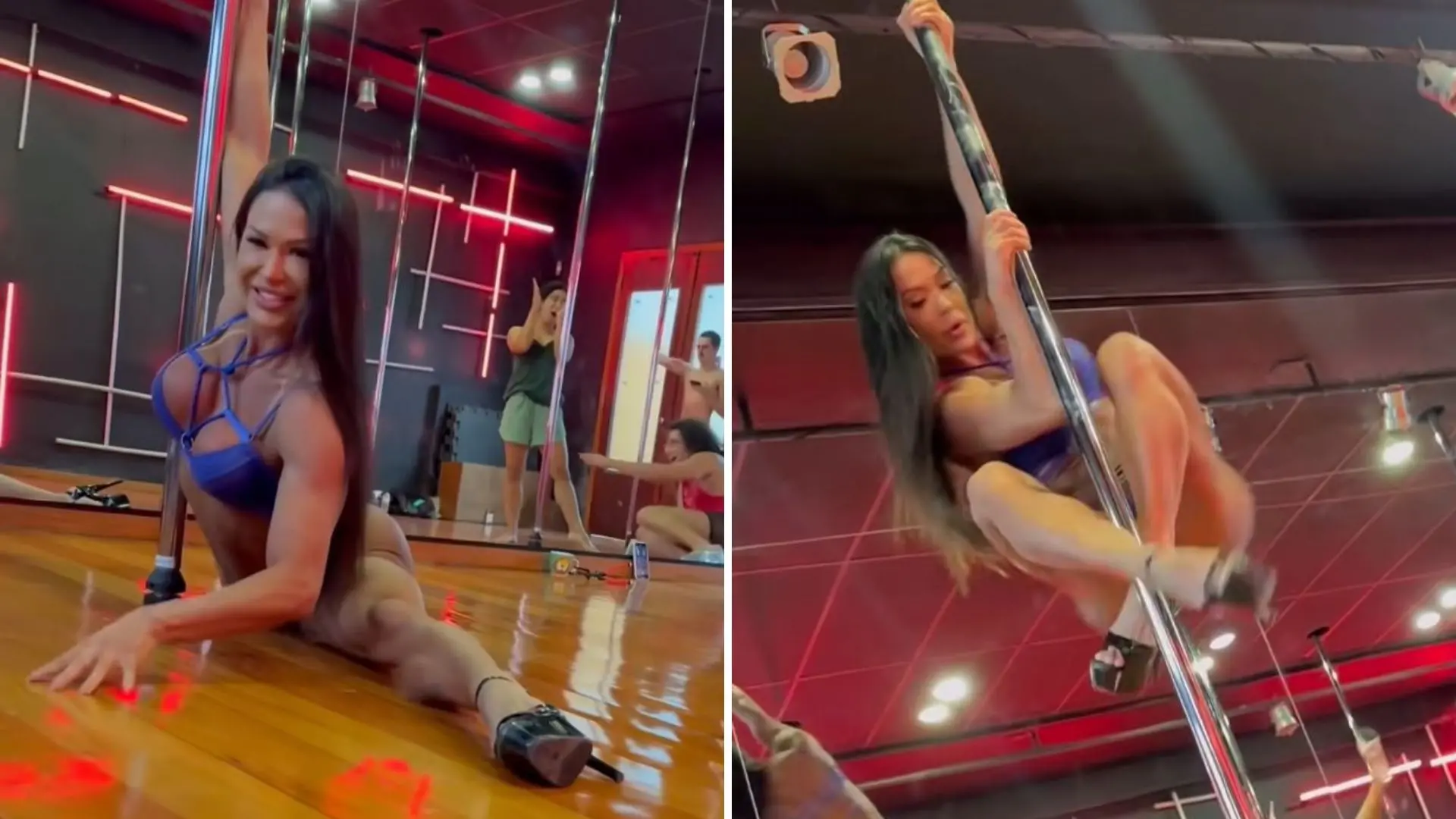 Após separação, Gracyanne utiliza música de Belo em aula de pole dance