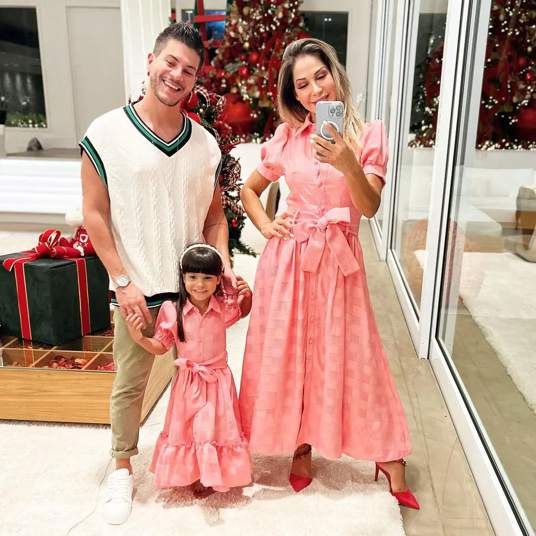 O ator e ex-BBB Arthur Aguiar e a life coach Maíra Cardi passaram o Natal juntos neste ano, meses após terem anunciado a separação. Eles celebraram a data ao lado da filha Sophia.