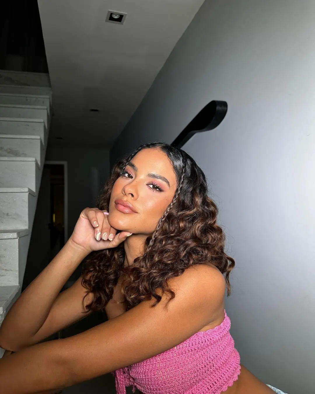 Publicada nos stories, a foto mostra a atriz com os cabelos soltos e usando um cropped rosa, posando em uma espécie de camarim. “Silêncio, estou fazendo cinema nacional”, escreveu ela.