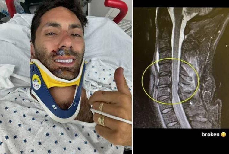 Logo depois da colisão, Nev Schulman foi levado inconsciente ao hospital, onde recebeu o diagnóstico de que havia quebrado o pescoço. O apresentador passou por uma