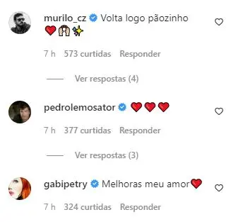 Por sua vez, a diretora Ruth, interpretada por Myrian Rios, compartilhou: "minha querida menina. Conte com minhas orações. Para Deus, nada é impossível. Te amo!".