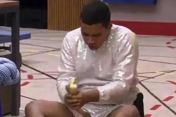 O momento ocorreu no fim da comemoração, quando a maioria dos participantes já havia se retirado aos quartos da casa. Bruno, também chamado de Bruno Gaga, sentou ao chão, pegou o objeto e o colocou nas partes íntimas.