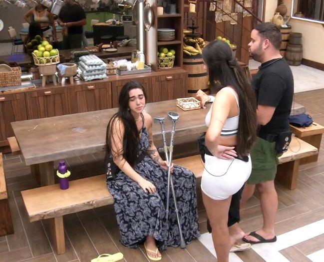"Tem que ficar cinco semanas com esse trem. Como vou participar de prova? Duas vezes por semana tem provas", contou aos brothers. A participante ainda conta com o uso de muletas.