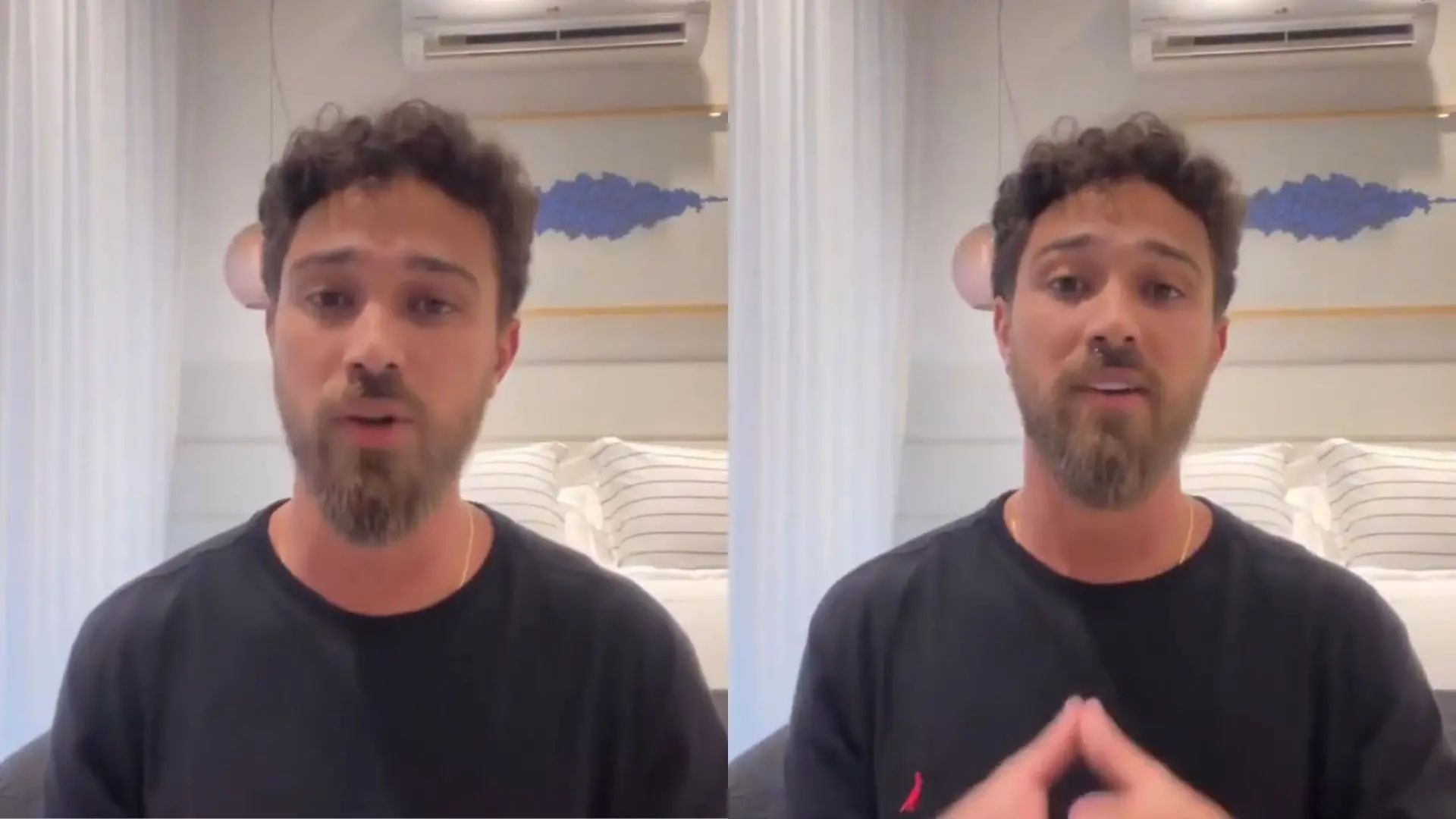 O ator também disse que a repercussão do episódio tem atingido pessoas próximas. “Isso está afetando não só a mim, mas amigos, família e minha esposa”, afirmou. Ele é casado com a atriz Larissa Manoela desde 2023.