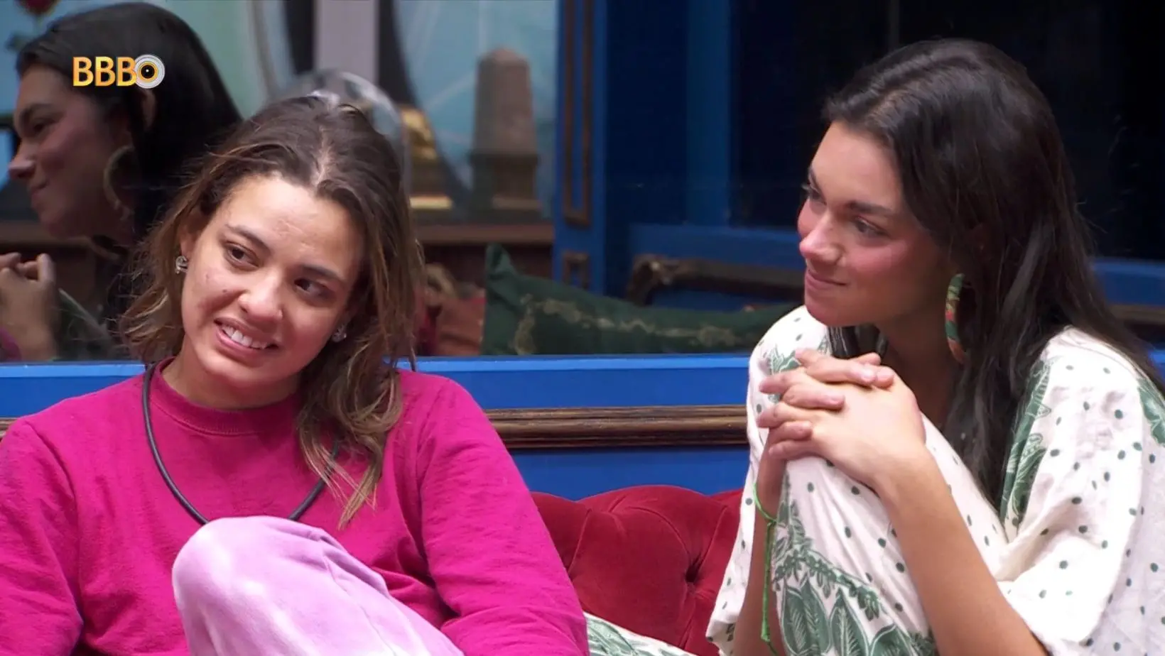 Nesta segunda-feira (8), Alane e Beatriz conversaram com o novo casal da edição. "Isso é uma coisa que a gente deixa muito claro, é que não tem a ver com você e o Matteus. Tem a ver com a gente. É porque a gente sempre quis que vocês se beijassem, ia ser a coisa mais linda do mundo", disse a vendedora.