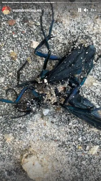 "Alguém sabe que bicho é esse? Meio maribondo, meio besouro? Me picou", explicou André com imagens do inseto já morto em foto no stories do Instagram.