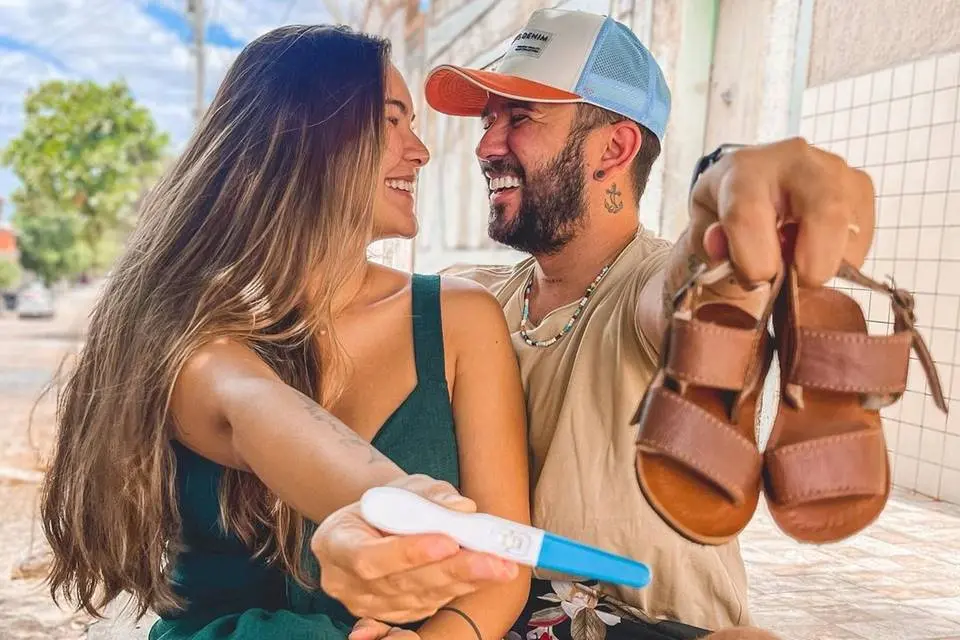 O cearense Bráulio Bessa anunciou neste domingo (9), pelas redes sociais, que a companheira Camila Mendes espera um filho seu. O poeta, pai de primeira viagem, postou uma foto com Camila, segurando um teste de gravidez e um par de sapatinhos infantis.