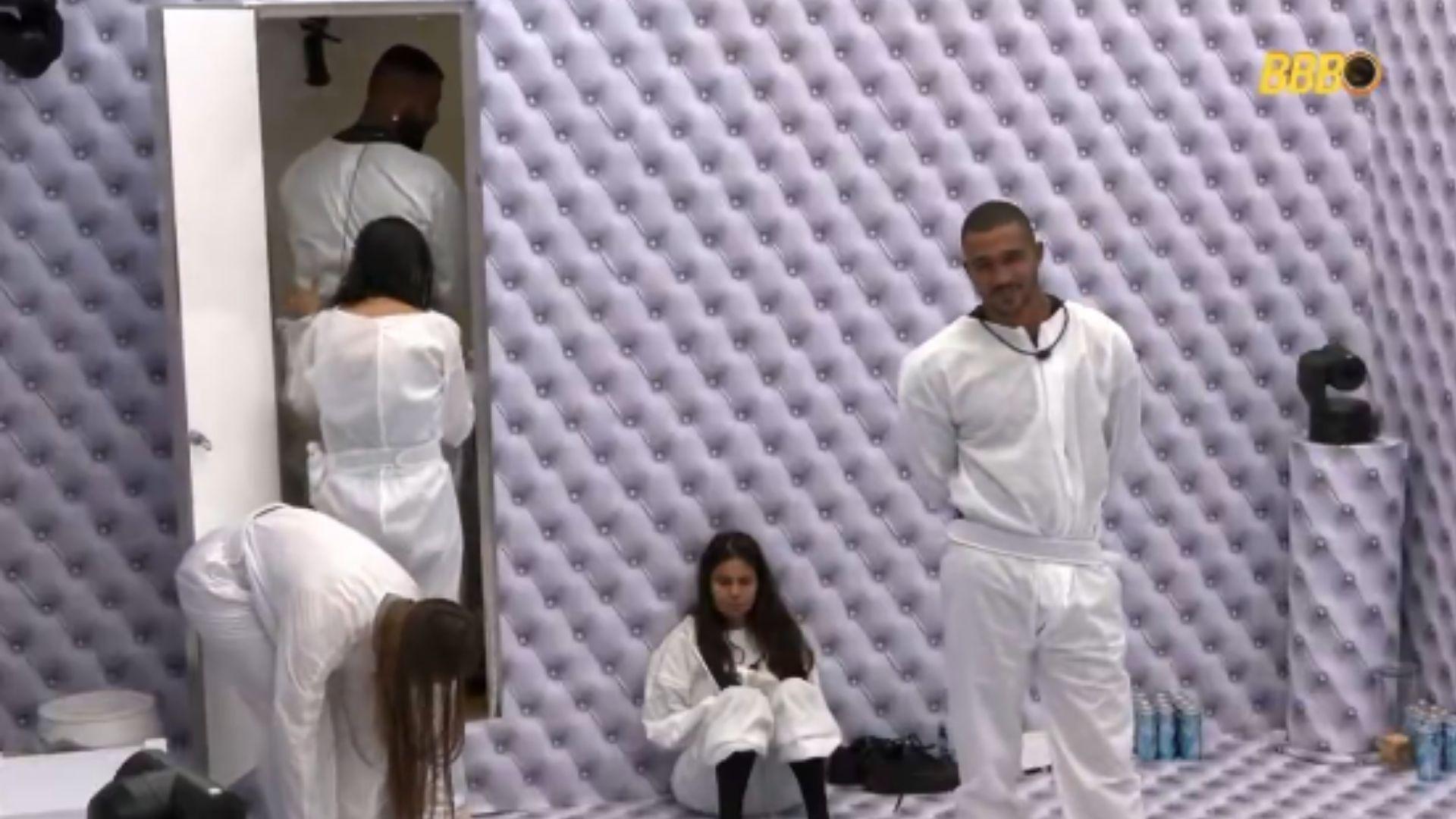 A produção chamou o brother para trocar de roupa, que comemorou ao voltar ao Quarto Branco: "só de não estar fedendo já está bom".
