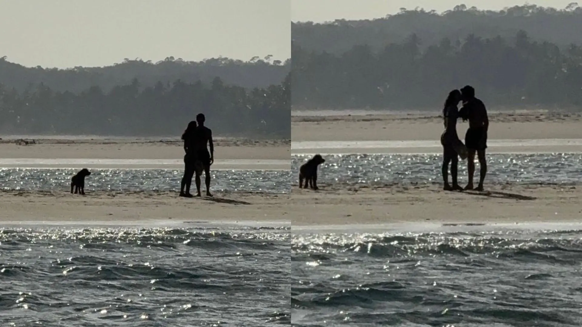 Em um vídeo, de autoria desconhecida até então, é possível ver quando a brasileira corre em direção ao artista e começam a se beijar, no meio da praia.