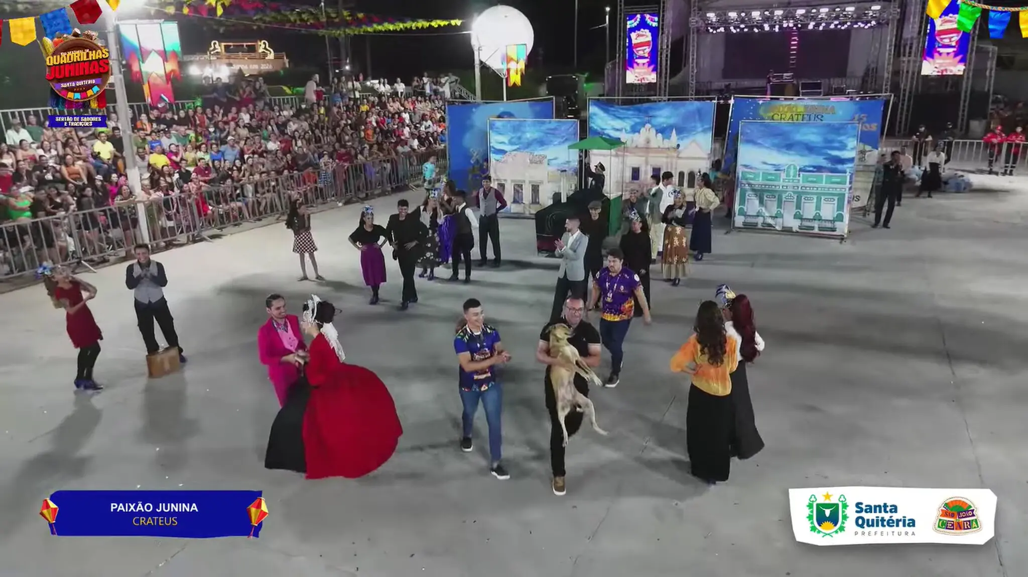 Cachorro caramelo interrompe grupo no Festival de Quadrilhas Juninas de Santa Quitéria; veja vídeo