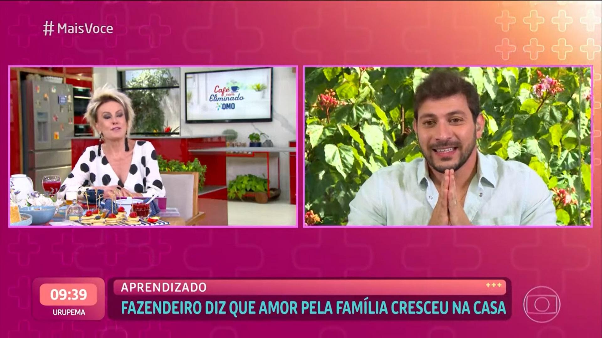O fazendeiro Caio, participante do BBB 21, chorou ao falar do amor pela família em entrevista a Ana Maria Braga no "Mais Você", na manhã desta quarta-feira (21). No bate-papo, a apresentadora mostrou o encontro dele com a companheira e cobrou o casamento dos dois.