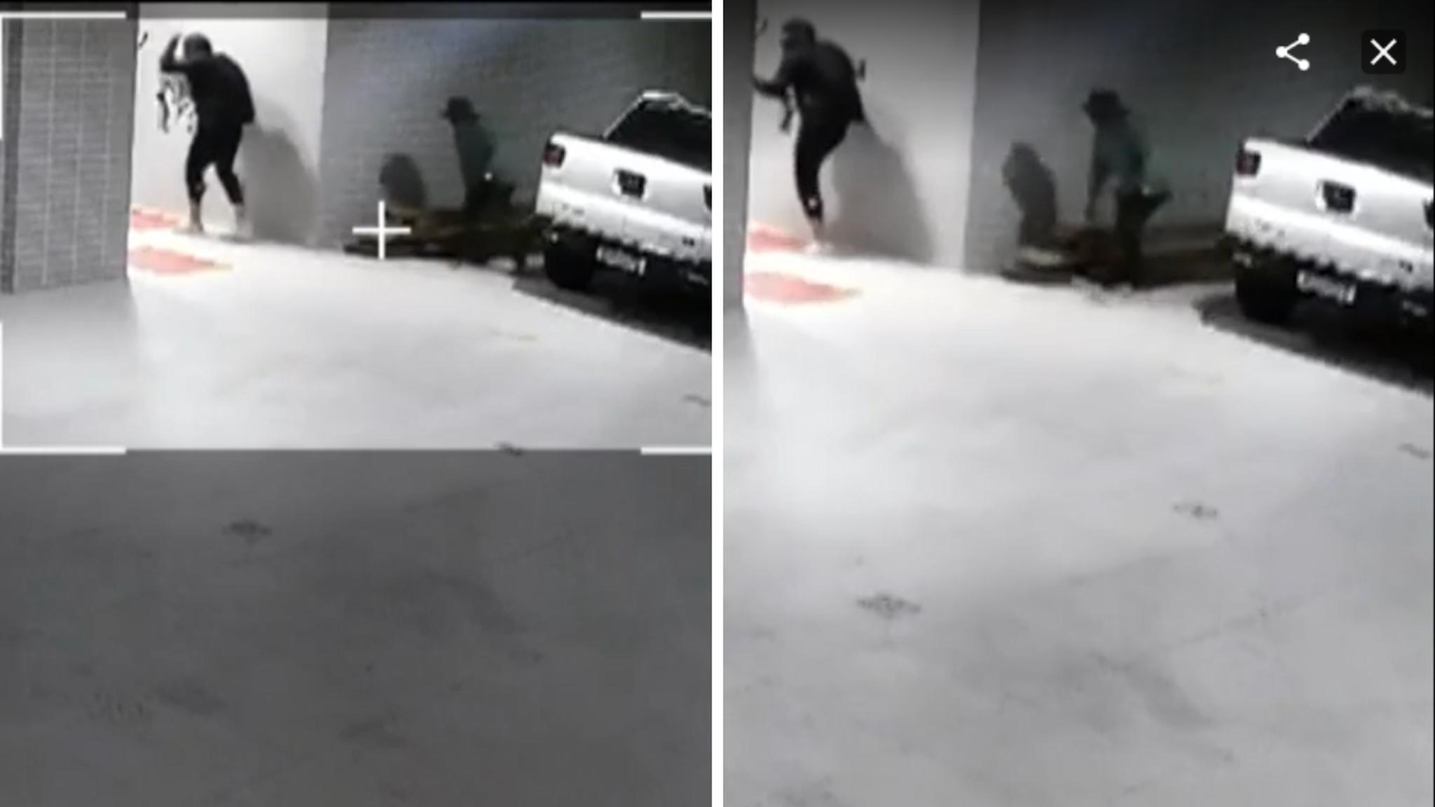 Nas imagens, reveladas com exclusividade pelo Fantástico nesse domingo (5), é possível observar que a dupla entra na garagem do edifício, por volta da 1h16. Usando chapéu, máscara e luvas, os indivíduos pisam leve e andam em linha reta. Apenas o homem carrega uma mochila.
