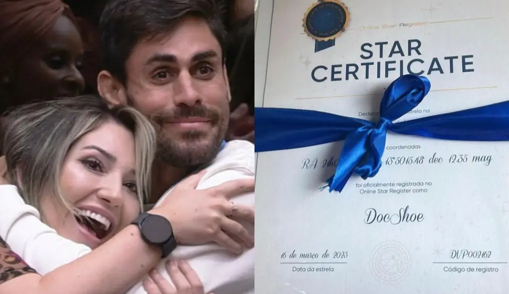 Eliminado do BBB 23 após o caso de importunação sexual contra Dania Mendez, Cara de Sapato tem recebido o carinho dos fãs nas redes sociais. Nesta quinta-feira (23), ele mostrou que os admiradores o presentearam com uma estrela, que foi batizada de “DocShoe”, nome do shipp dado a ele e Amanda.