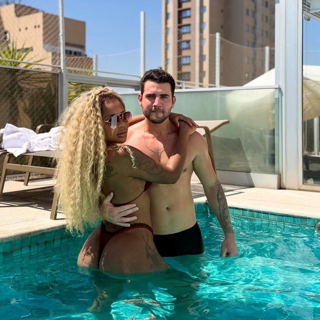 Apresentadora posou com Alexis Couto na piscina e se declarou nas redes sociais