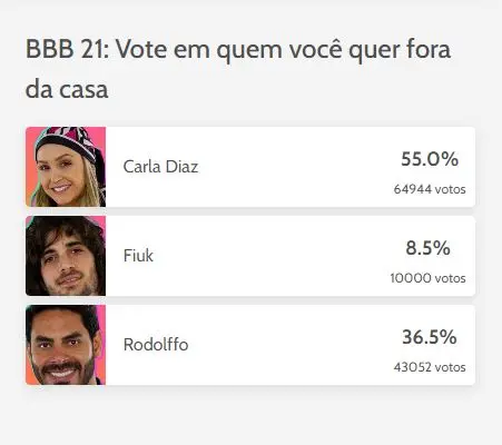 Nesse ponto, vale ressaltar que os resultados da enquete não influenciam na eliminação oficial, que vai ao ar na TV Globo na noite desta próxima terça-feira (23).