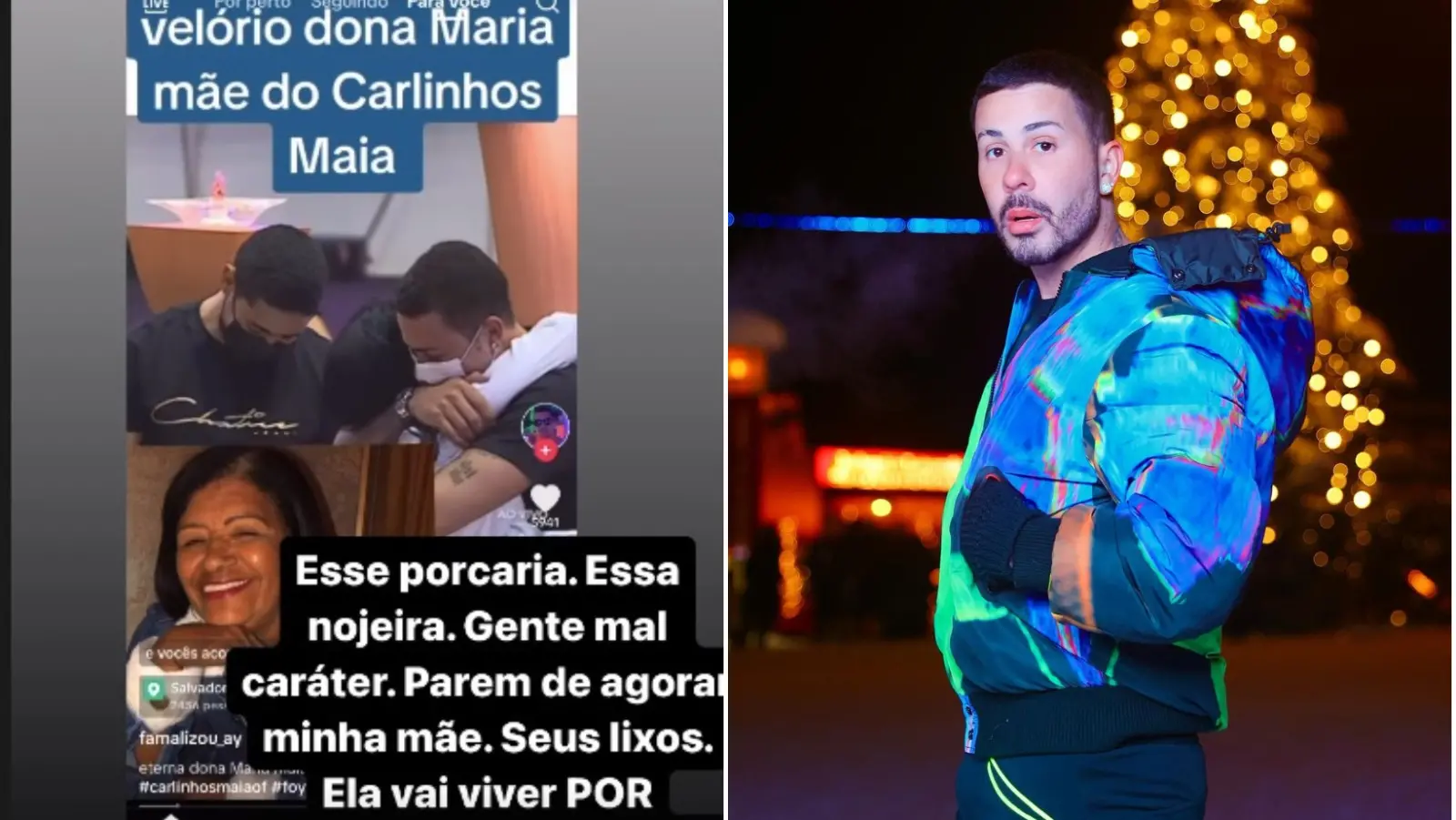 “Essa porcaria, essa nojeira. Gente mau-caráter. Parem de agourar minha mãe, seus lixos, ela vai viver muito tempo. É o tempo todo essa maldade sem fim. Não cansam de querer me adoecer”, acrescentou.