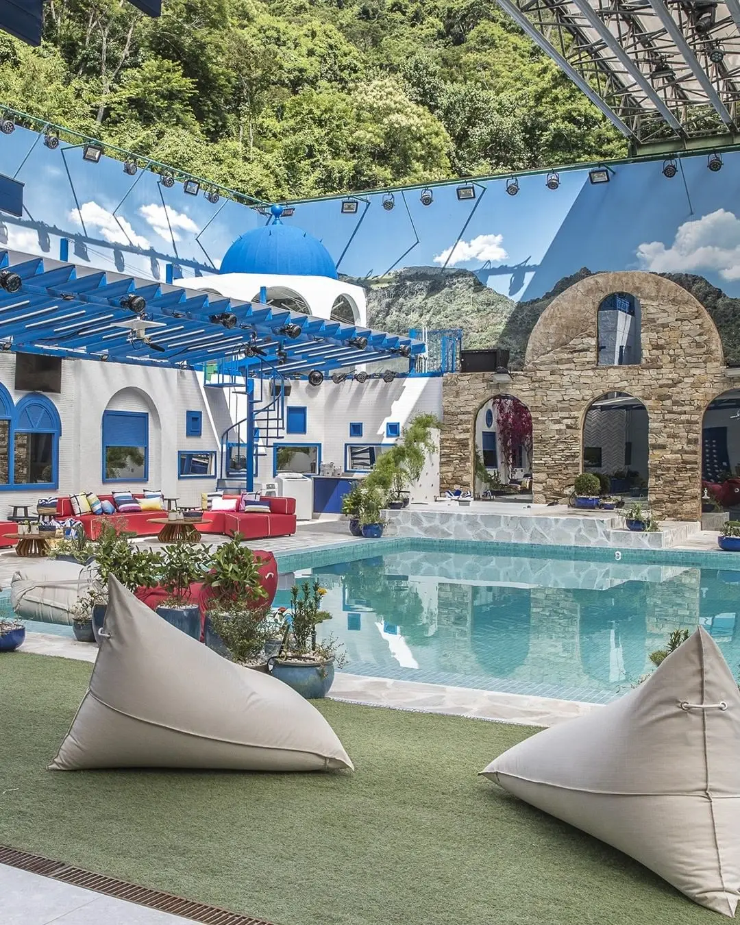 Este ano, a piscina da casa tem as cores azul e branco como predominantes, que lembram o visual da Grécia. Já na academia, por exemplo, o ponto de encontro para os confinados deve ser ainda mais confortável, com lounge exclusivo repleto de poltronas, bar e bebidas para acomodar.