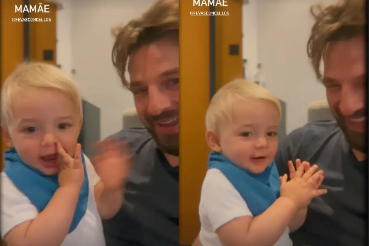 No vídeo publicado pelo ator nas redes sociais, Romeu aparece sorrindo e batendo palmas, incentivado pelo pai.