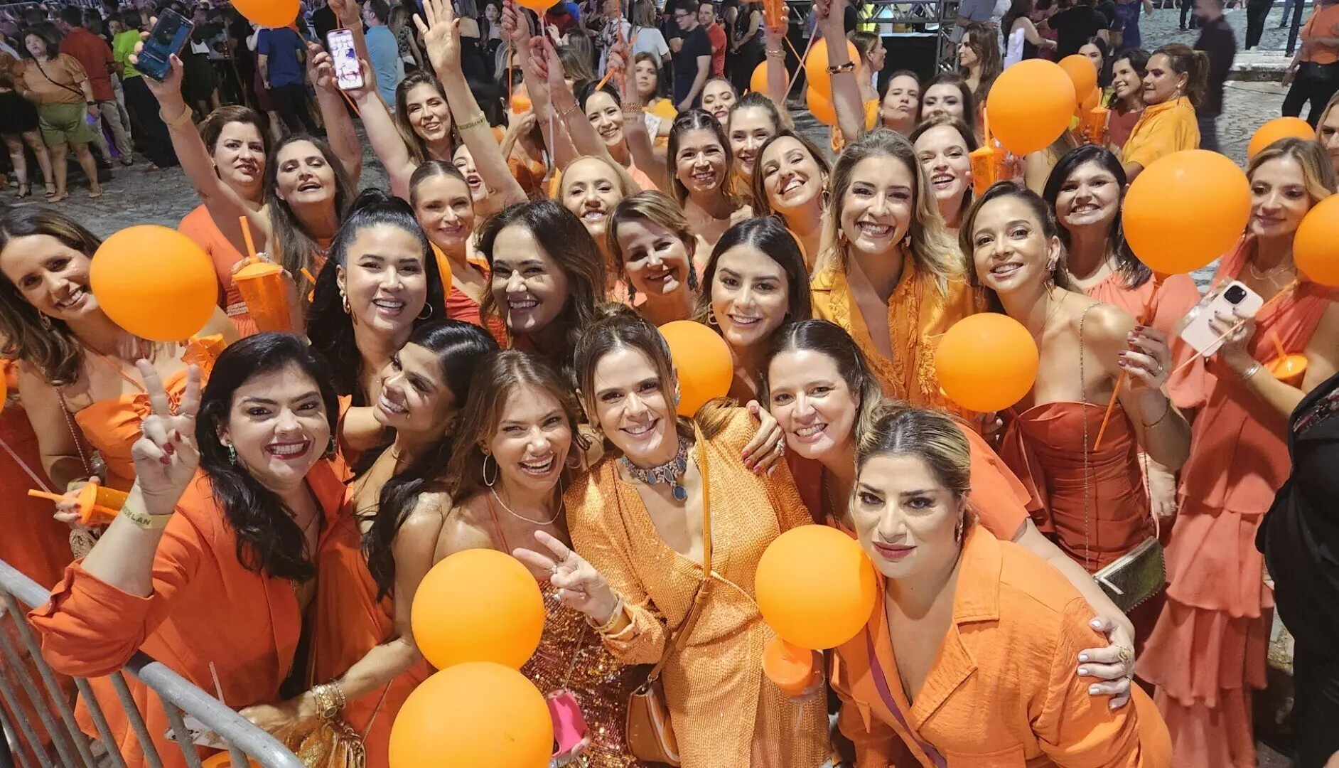 A médica cearense Niedja Bezerra comemorou o aniversário de 49 anos ao lado de amigas no show do cantor Fábio Jr, realizado na noite de sábado (2), em Fortaleza. Ela chamou atenção de todos no evento ao reunir um grupo de 49 mulheres, com todas vestindo looks na cor laranja.