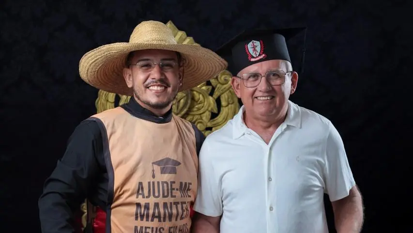 Ele percorreu 218 cidades em sete estados vendendo adesivos para pagar a faculdade de Raimundo Matheus Camelo, seu filho.