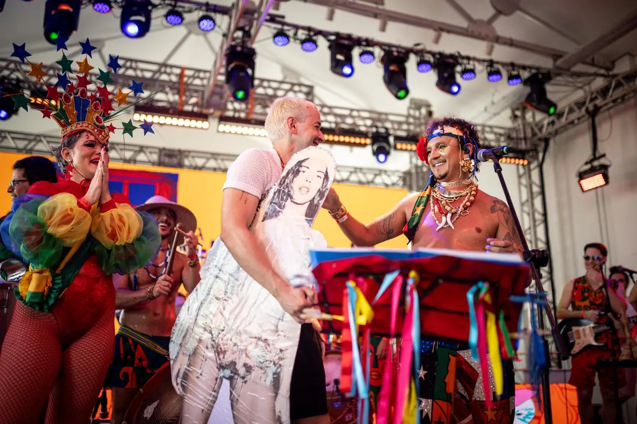 Ele não só subiu no palco do bloco durante o repertório da Marina Sena, como foi registrado pelo artista Silvero Pereira - que estava entre os filões - e publicou nas redes sociais que Roderico fez a "melhor fantasia de Pré-Carnaval em Fortaleza". E o post foi notado pela cantora, que comentou na publicação.