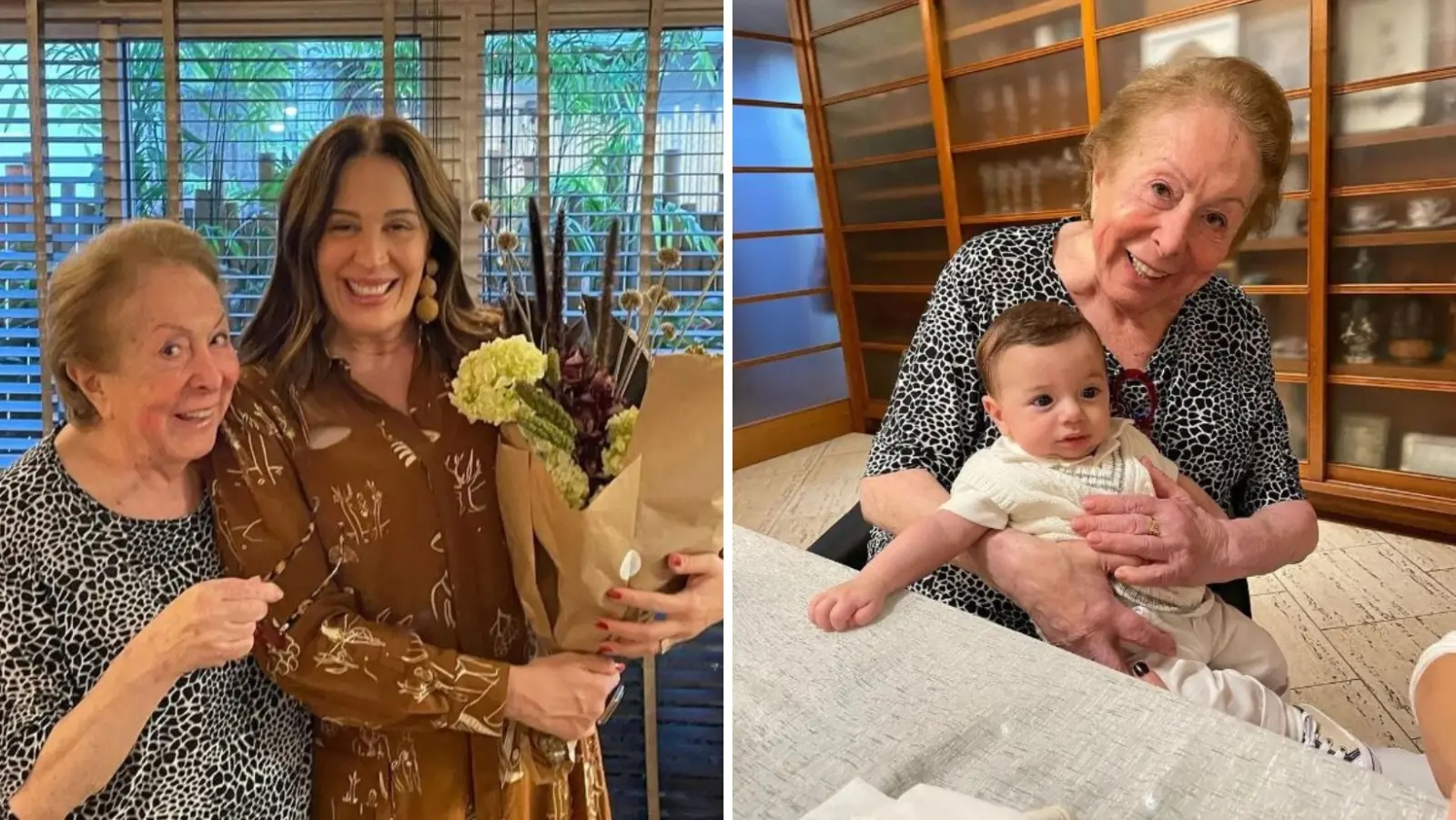 A atriz Claudia Raia compartilhou com os seguidores registros do último encontro com Aracy Balabanian, que morreu nesta segunda-feira (7) por consequências de um câncer de pulmão, aos 83 anos. Na publicação, a artista aparece segurando Luca no colo, o filho caçula de Claudia, e presenteia a família com um buquê de flores. O encontro aconteceu em 16 de julho deste ano.