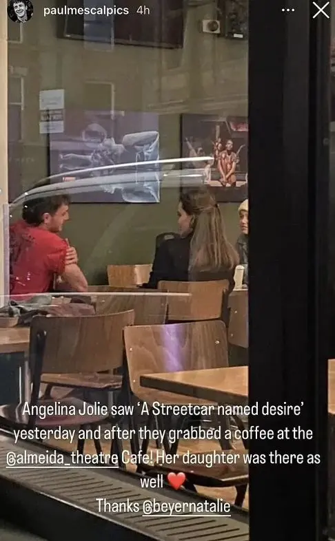 Segundo um perfil de fã-clube do ator, conhecido por publicar fotos de vários momentos da rotina dele, os dois teriam saído juntos logo após a atriz assistir a uma peça de teatro estrelada por Mescal. Na ocasião, ela estava na companhia da filha Shiloh Pitt.