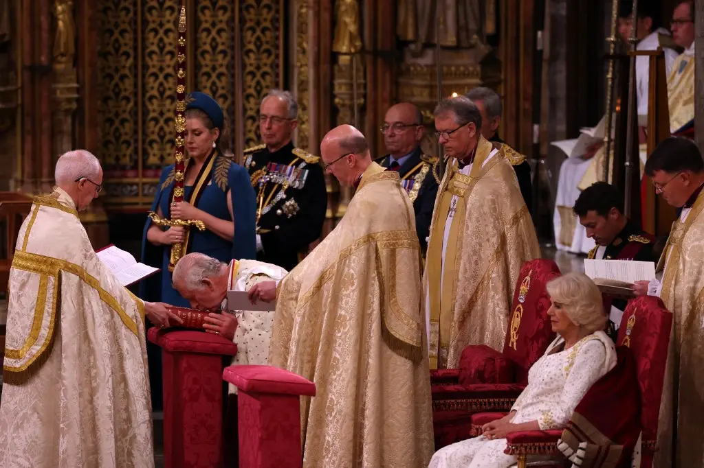 "Rei dos reis e Senhor dos senhores, abençoai, nós vos rogamos, esta Coroa, e assim santificai vosso servo Charles, sobre cuja cabeça hoje a colocais como um sinal de majestade real", disse o arcebispo da Igreja da Inglaterra pouco antes de Charles III receber, então, a coroa.