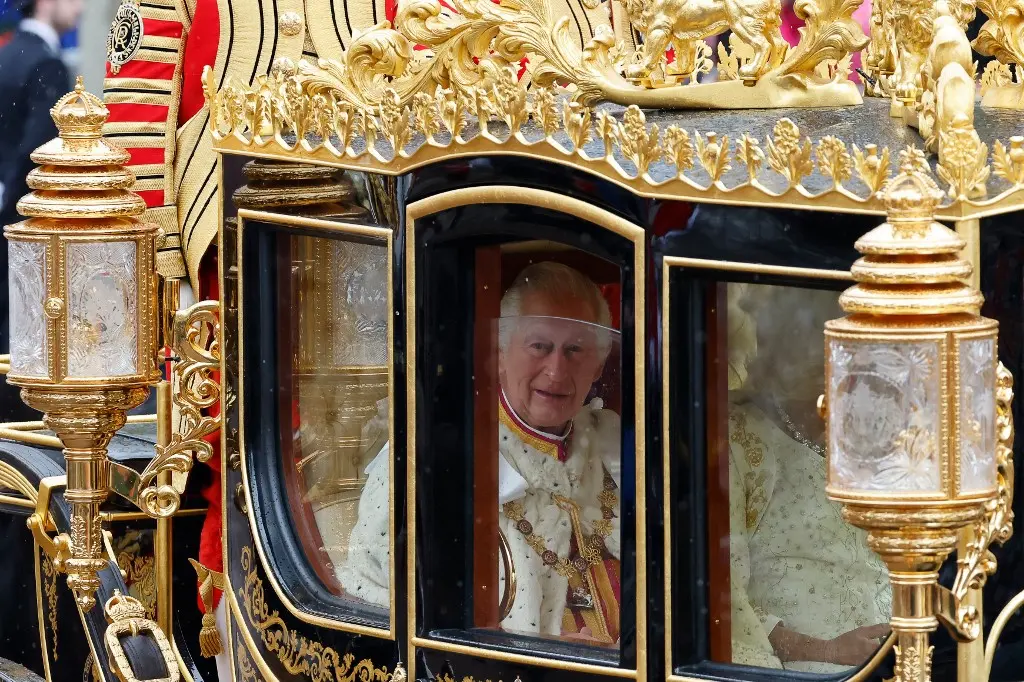 A carruagem Diamond Jubilee State Coach, criada para comemorar o 60º ano da rainha Elizabeth II no trono e usada pela primeira vez em 2014, foi a escolhida para o momento. Segundo a imprensa britânica, a coroação de Carles III, inclusive, está sendo menos luxuosa que a de Elizabeth II, quando realizada em 1953.