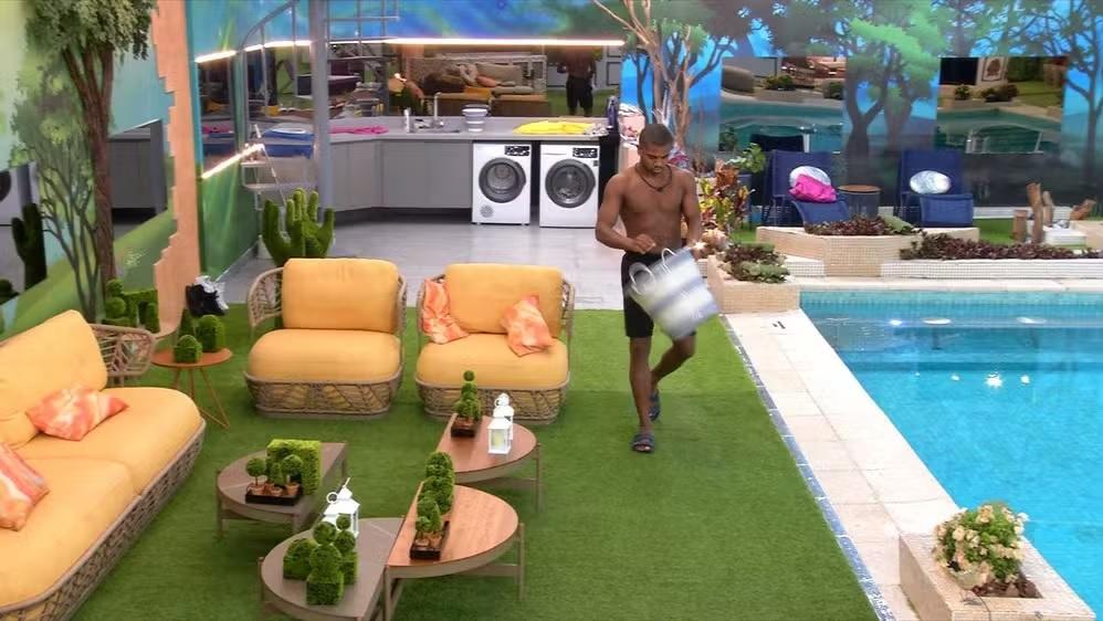 Após uma madrugada de conflito com Leidy no BBB 24, o baiano Davi acordou pensando em vingança. Na manhã desta terça-feira (12), ele foi até a lavanderia com um balde e disparou: "Ela vai tomar o dela". Logo depois, ele encheu o recipiente com a água da piscina.