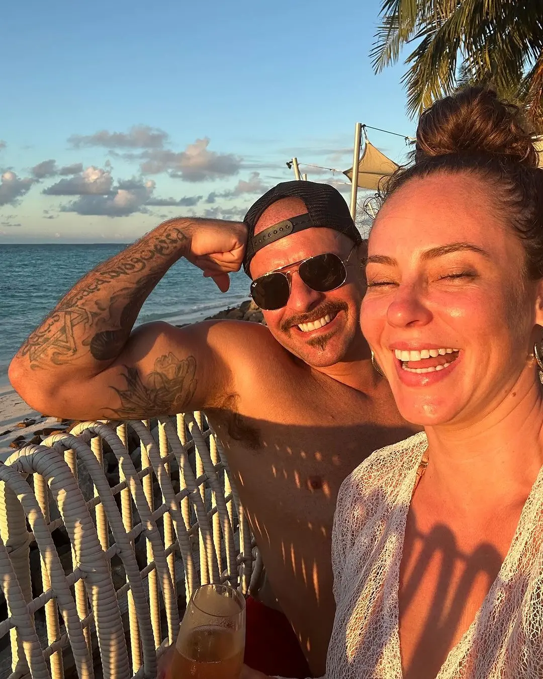 O cantor está com a namorada, Paolla Oliveira, no destino paradisíaco